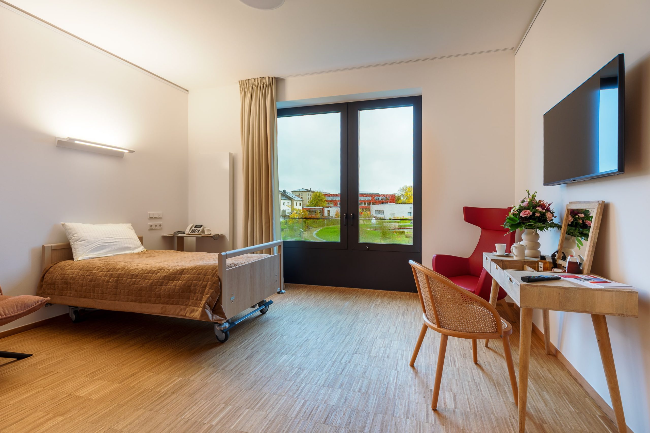 - À l'arrivée, un membre de l’équipe soignante accompagne dans la chambre ou la suite (le résident(e) peut venir accompagné(e)).
